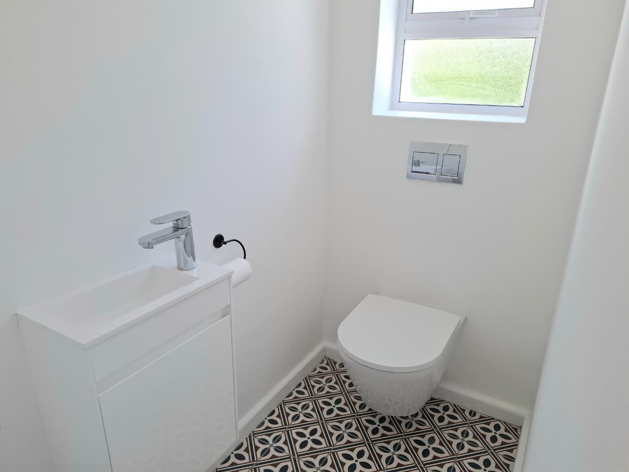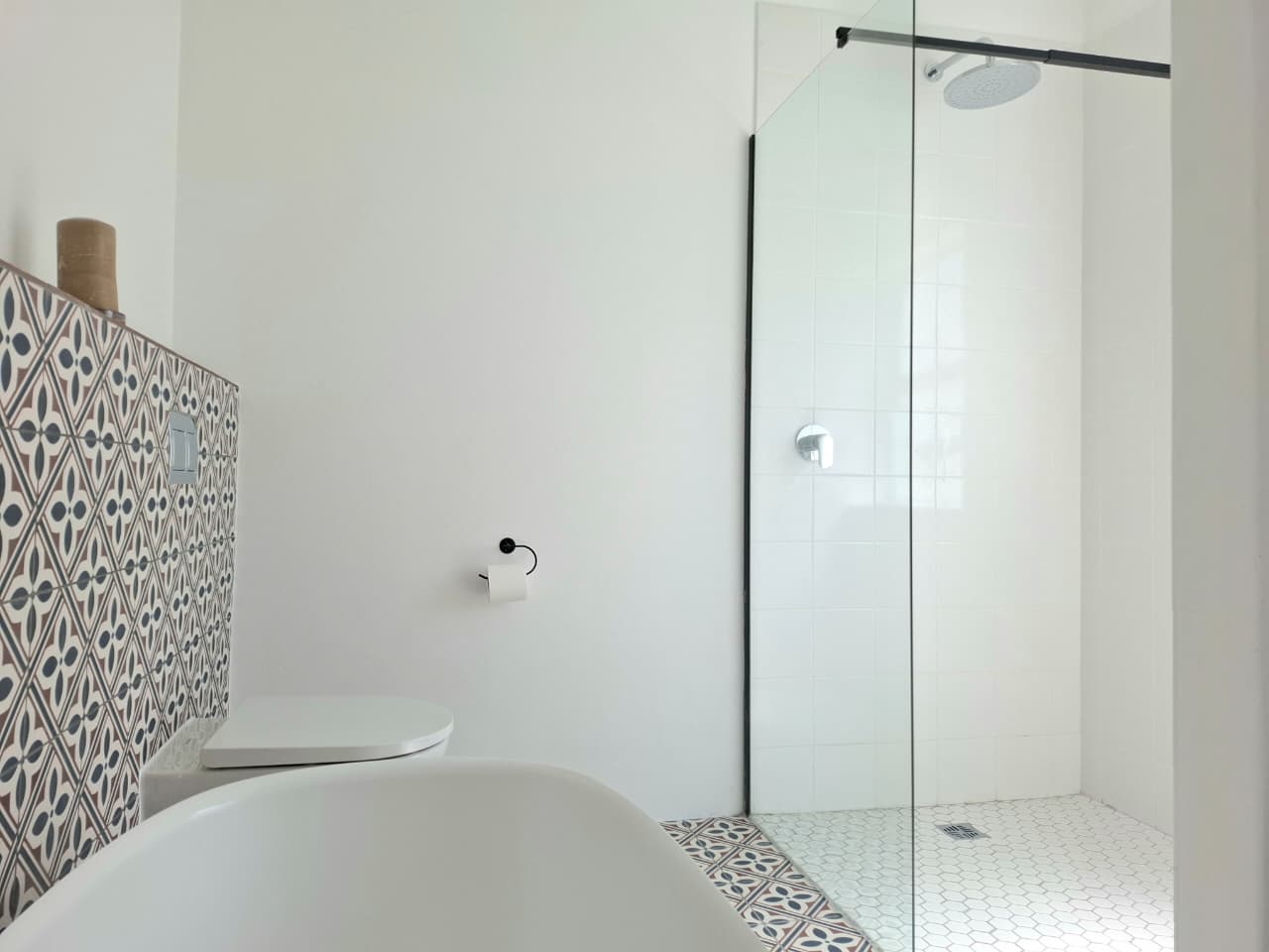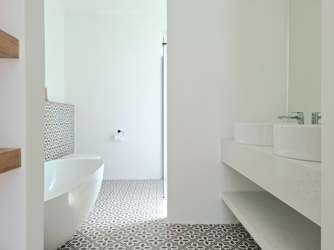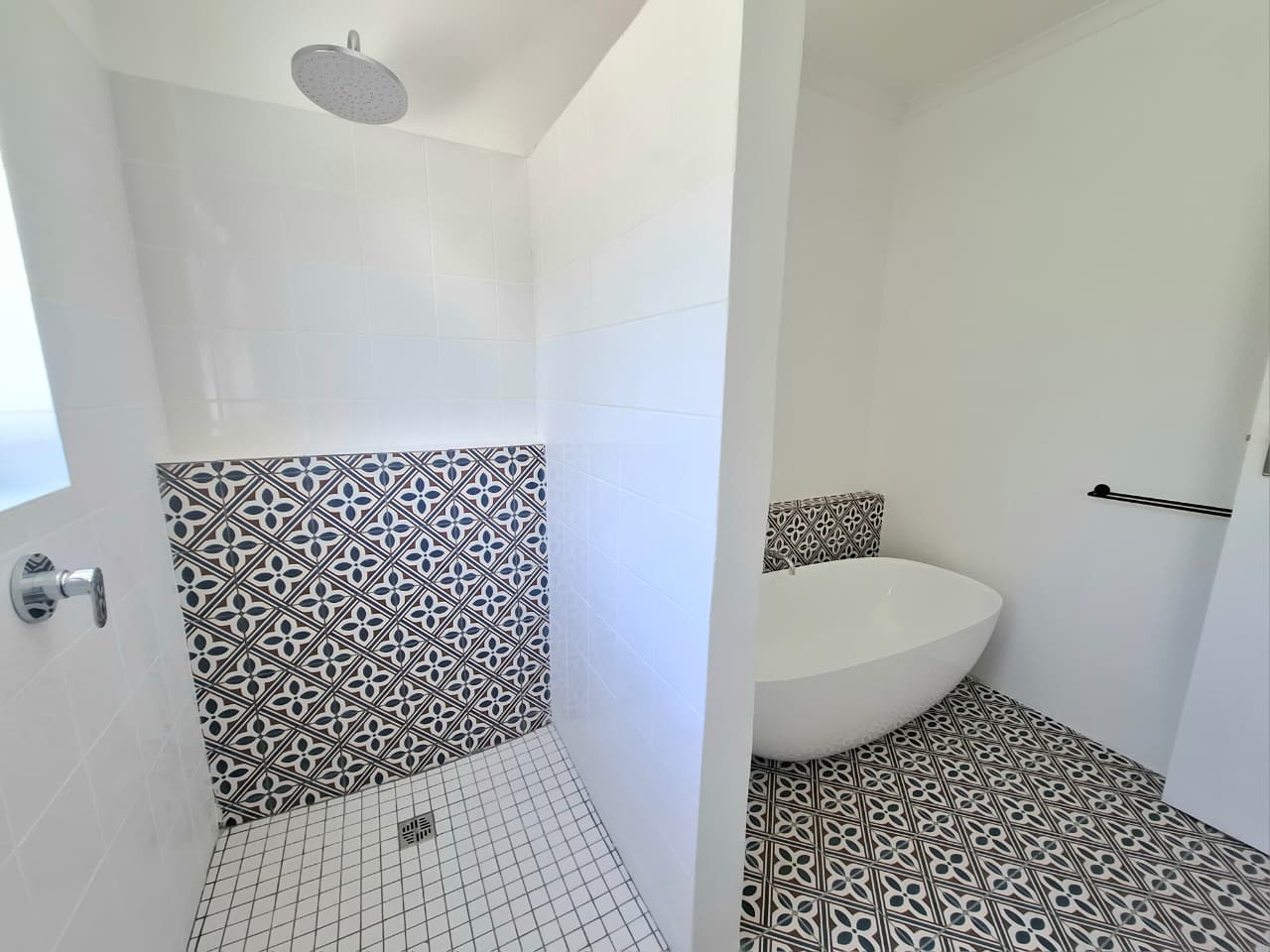 The Spanish-inspired kitchen offers plenty of work and packing space, a SMEG gas/electric oven, extractor, space for 3 washing appliances, and double sink. High ceilings accentuate the feeling of openness. Accommodation comprises of 3 bedrooms and 2 and a half bathrooms. Both bathrooms offer both shower and separate tub, while the main ensuite has a double vanity and enormous walk-in shower. There are aluminium windows and doors throughout, and track lights. The single garage is automated, and a further 3 cars can park on the driveway. A sheltered, lawned garden wraps around the back of the house, and a storeroom offers extra space for garden items/a workshop.