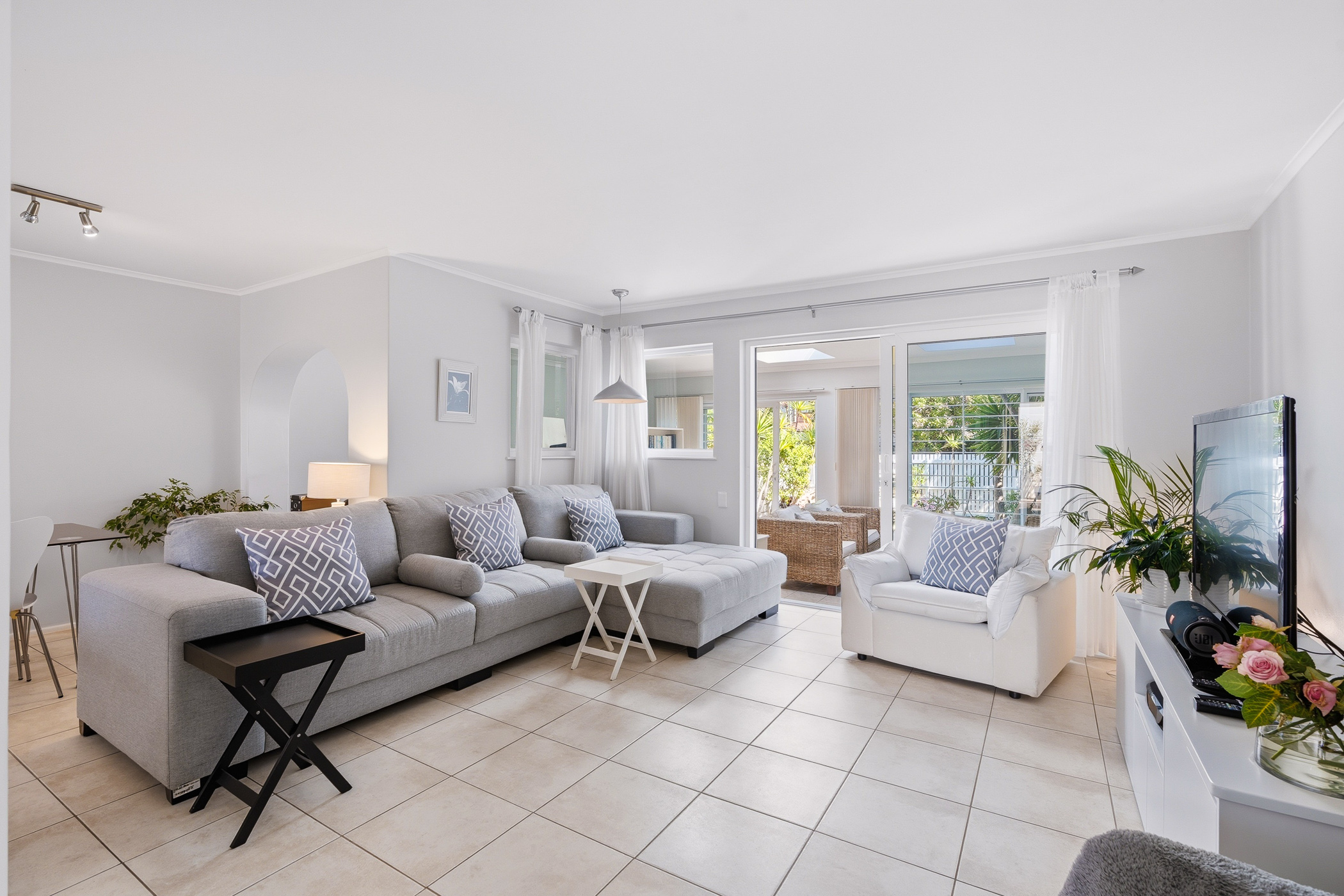 The light-filled, open-plan living and dining area includes a dedicated study nook and flows seamlessly into a lovely sunroom and small manageable private garden. A pedestrian gate provides direct access to the greenbelt, placing sports fields just a two-minute stroll away.