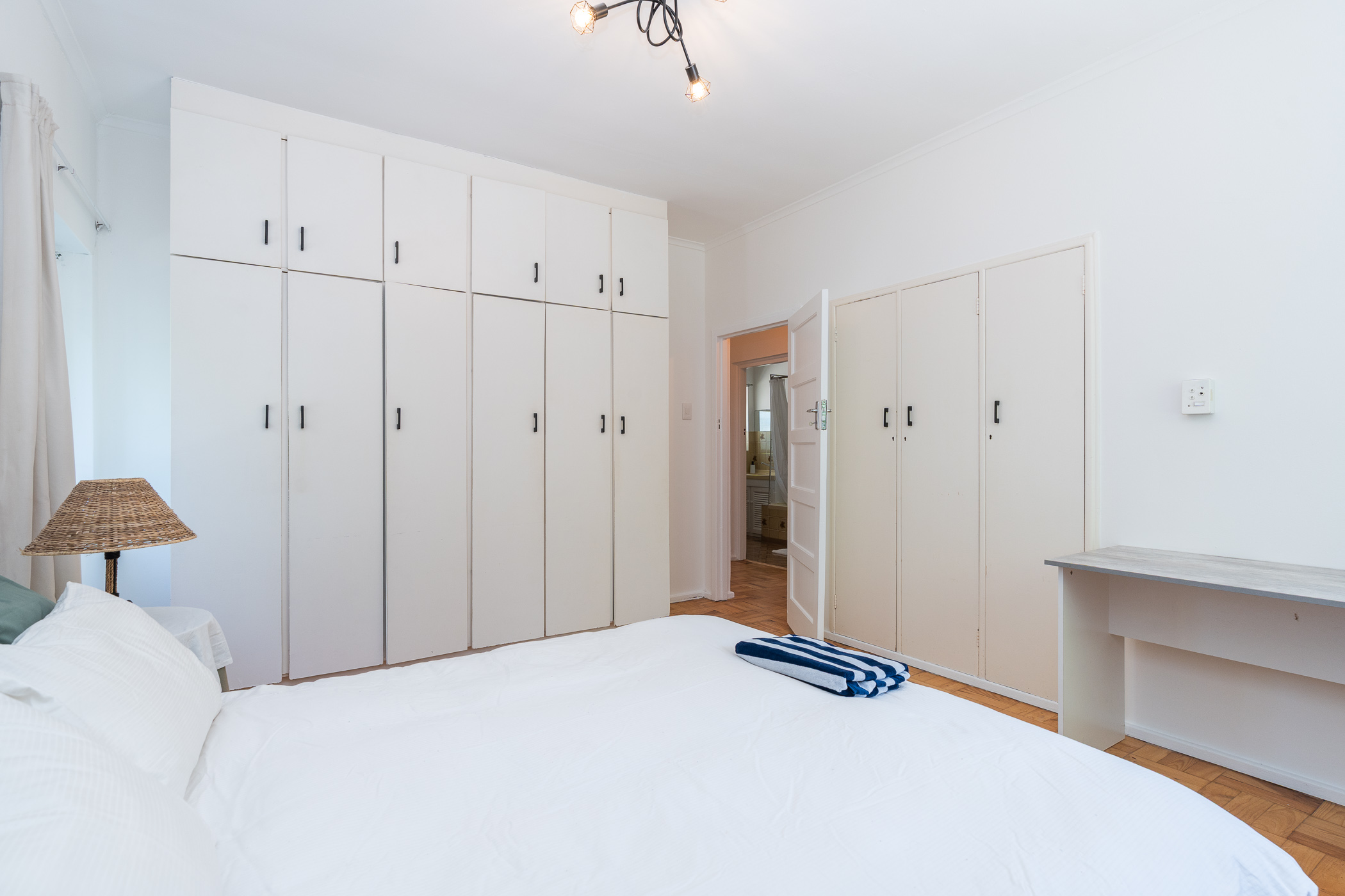 The three Parquet-floored bedrooms are spacious and have built-in cupboards - two are North-facing, one East-facing. The Bathroom has a bath with shower over, vanity and loo.