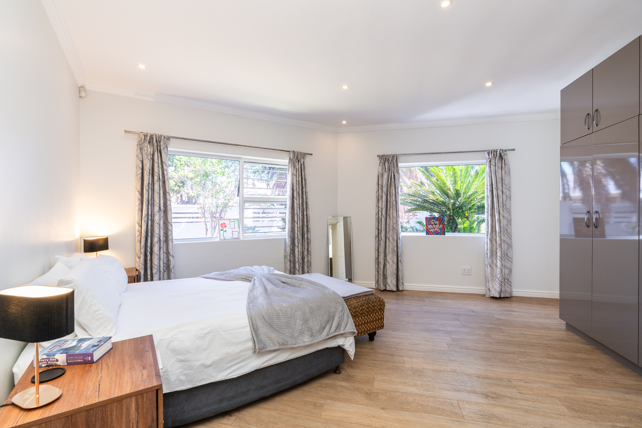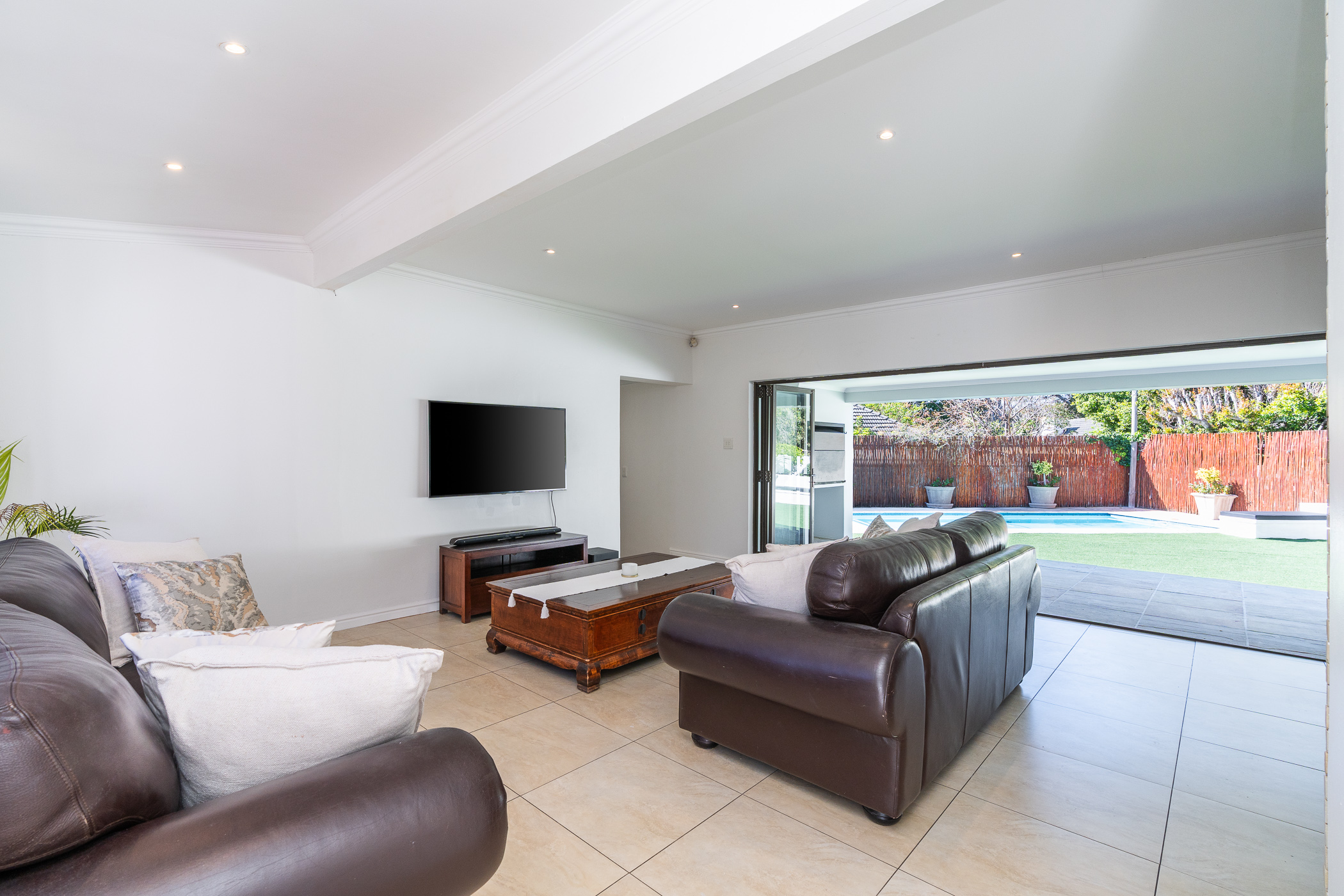 Situated in the serene, tree-lined avenues of Bergvliet – a community known for its excellent schools and strong family values – this expansive freehold property offers the ultimate in space, style, and comfort. Meticulously extended and modernised, the home showcases contemporary flair throughout, with clean lines, aluminium stack-back doors, porcelain floor tiles, quartz countertops and an effortless indoor-outdoor flow.