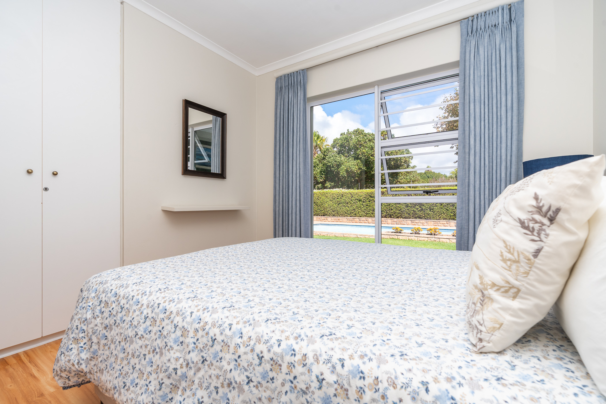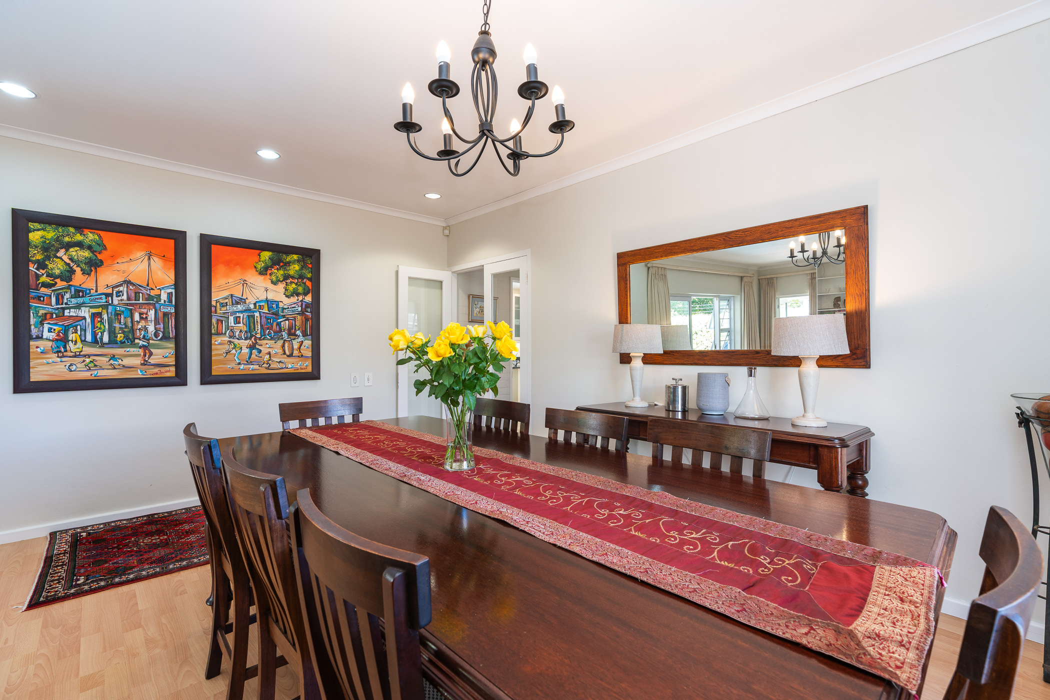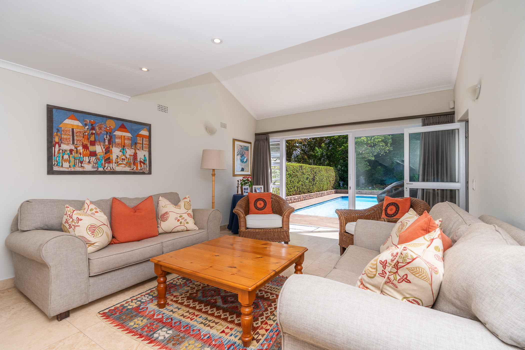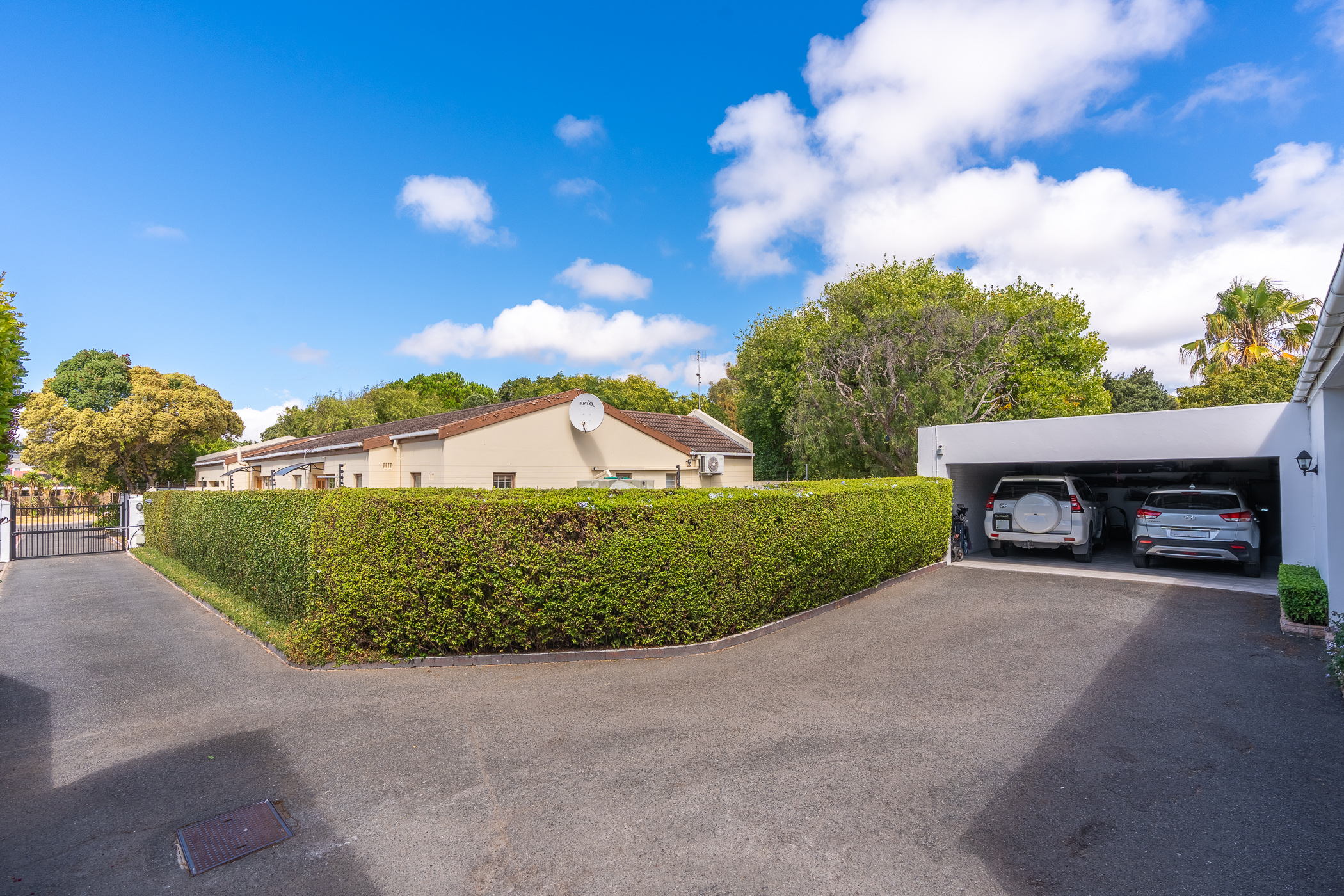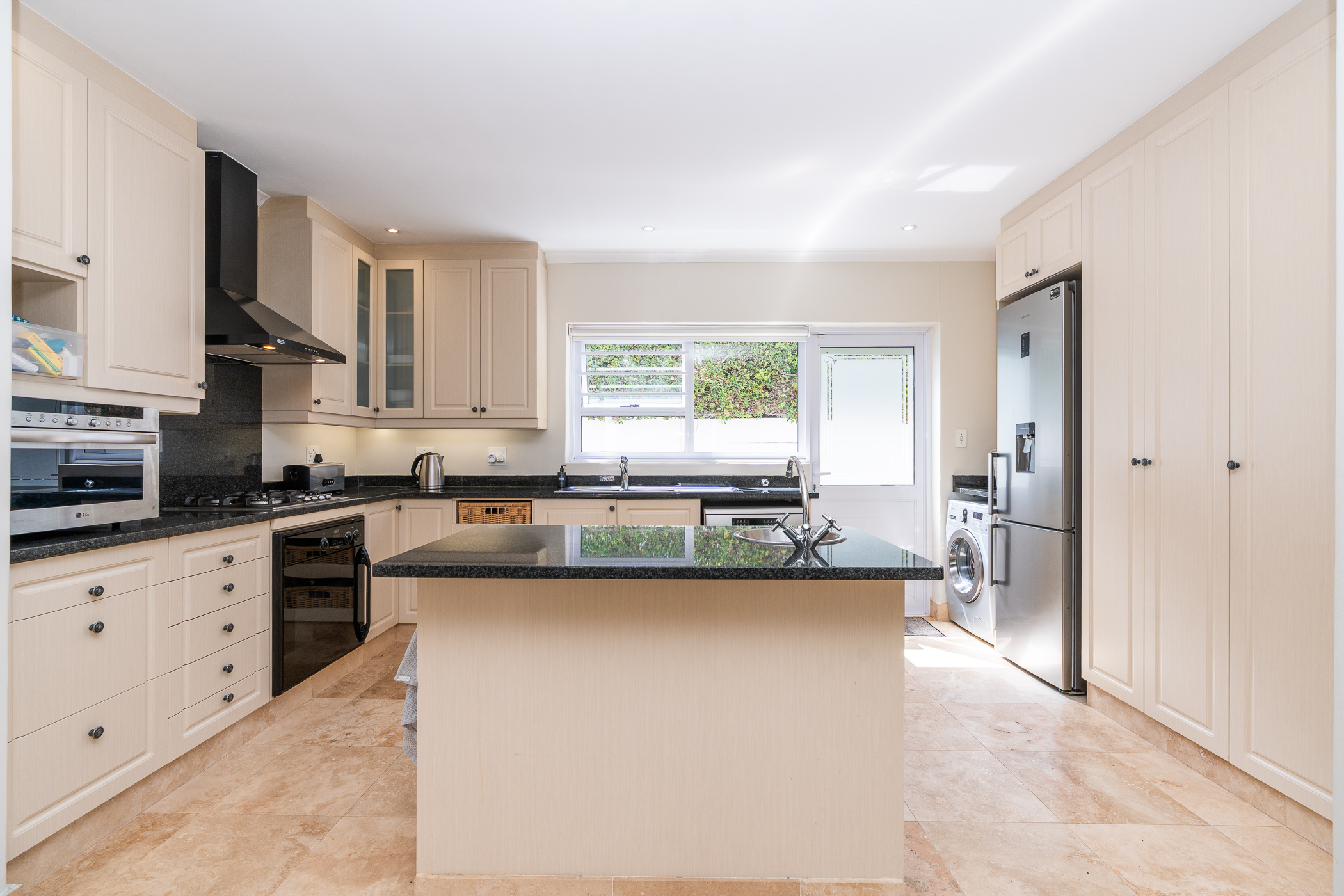 Every aspect of this property epitomises careful consideration – from the location down a quiet panhandle, to the modern finishes throughout, to the L-shaped build creating a beautifully-sheltered North-facing entertainment space looking towards the Constantia mountains, and the generous size of every room. There is parking for 6+ cars along the driveway plus an extra-large, automated double garage with direct access into the house.