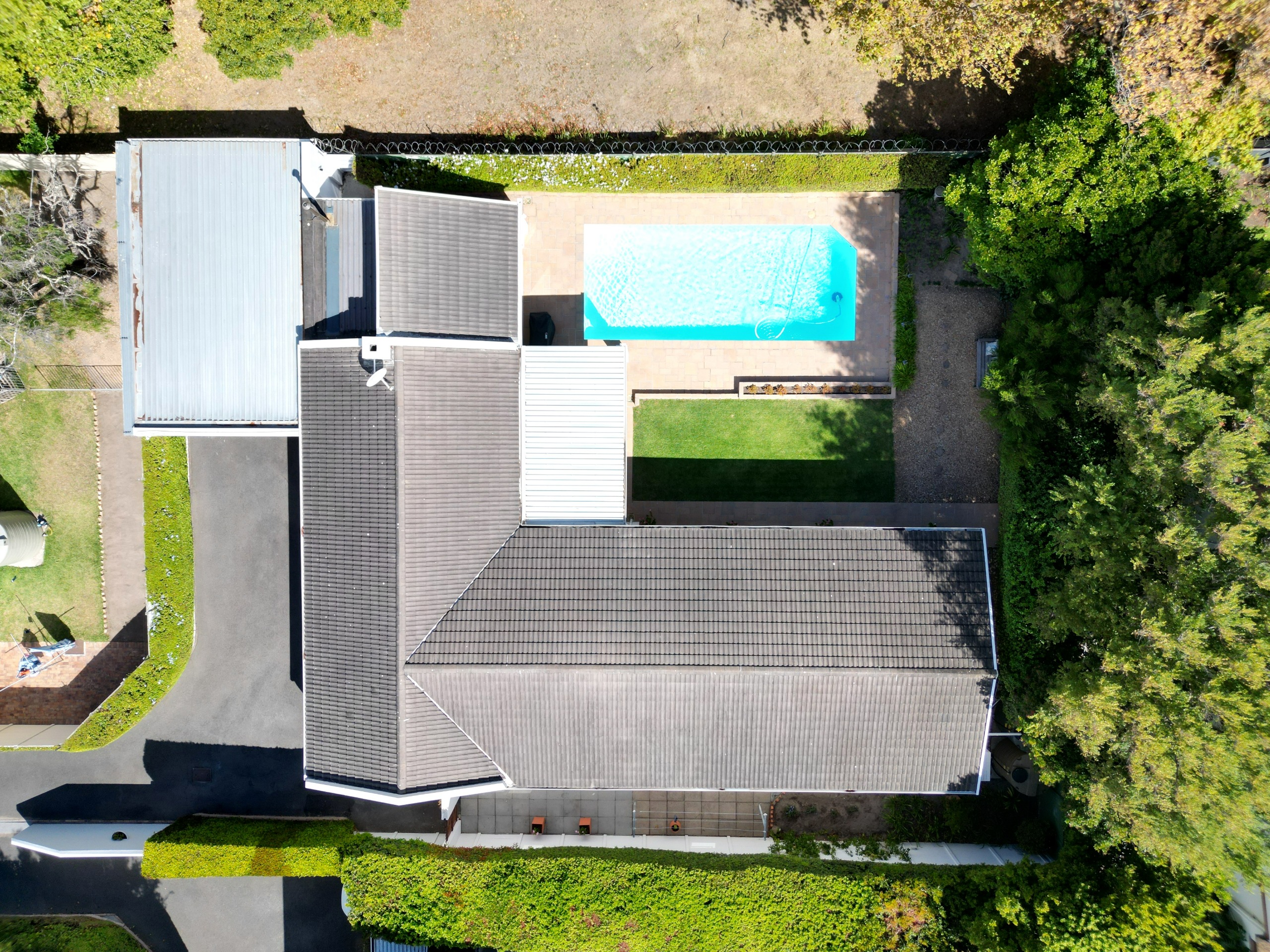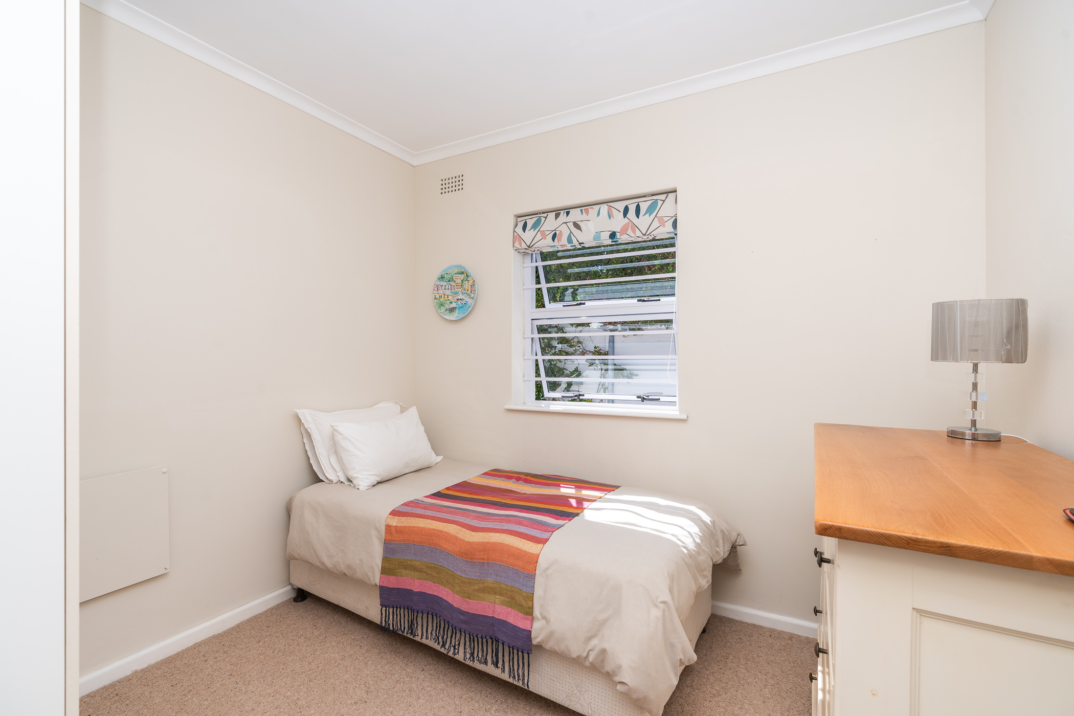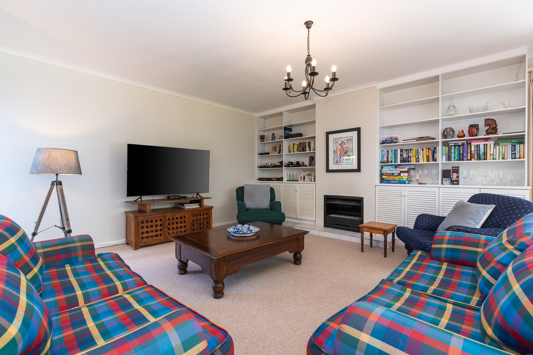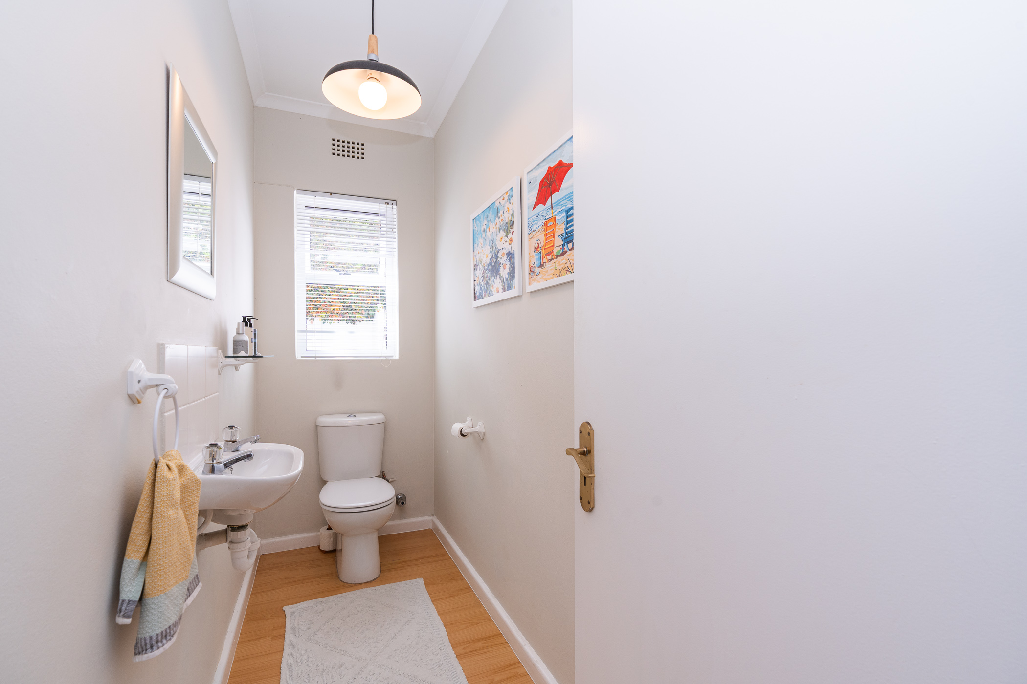 The bedroom wing consists of 4 bedrooms, 3 of which look onto the garden, and the main enjoys direct access through French doors. All 4 bedrooms have built-in cupboards. The main bedroom has an aircon, walk-in closet, and gorgeous modern bathroom with double vanity, egg tub, and large shower. Two more aircons (all digital inverter types) in two of the bedrooms. One of our favourite additional spaces is the pyjama lounge/winter room (with Morso fireplace) that sits between the garage and formal lounge – and also enjoys direct access to the garden. Extras include direct access to the greenbelt through a pedestrian gate, aluminium windows and doors throughout, rainwater/greywater system, and first class security.