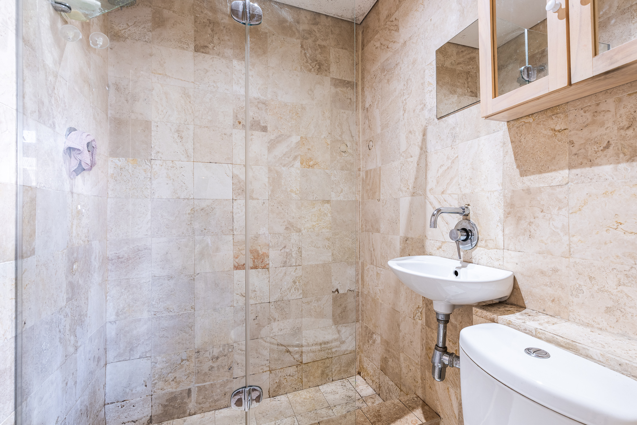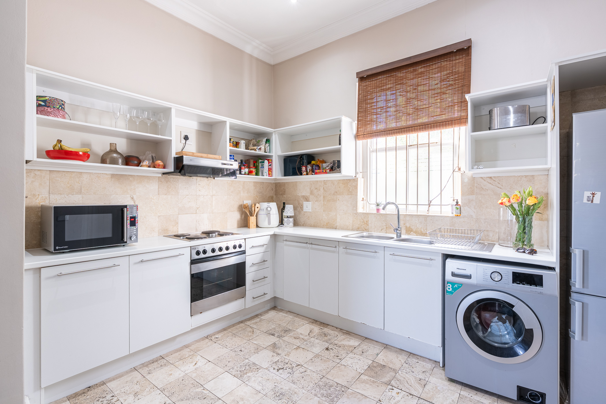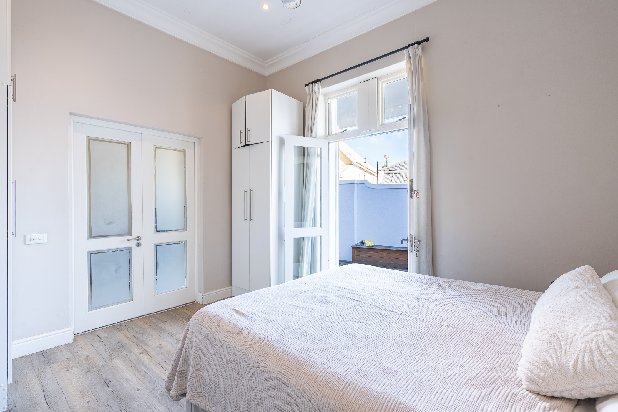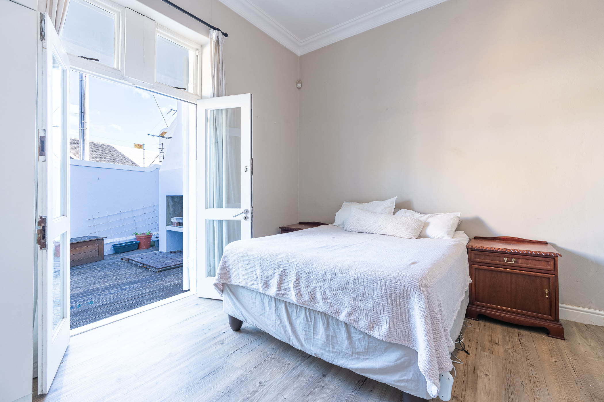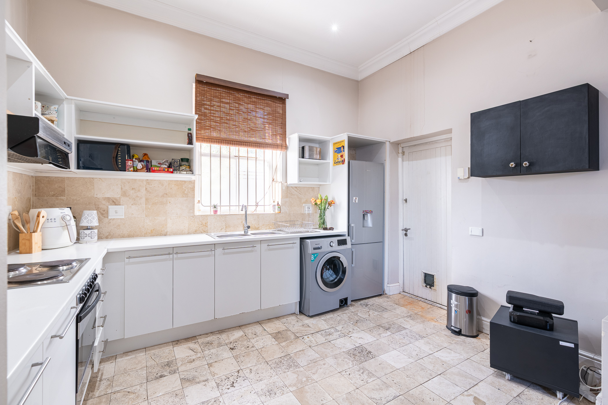 Ideal for both relaxed living and smart investing, the property also includes a separate study – a bright and quiet space ideal for remote work or creative projects. The kitchen and living area are anchored by ample built-in cupboards and working surfaces, making everyday life feel effortlessly organised. Step outside into the private courtyard where a built-in braai and timber decking set the stage for easy outdoor entertaining or peaceful morning coffees.