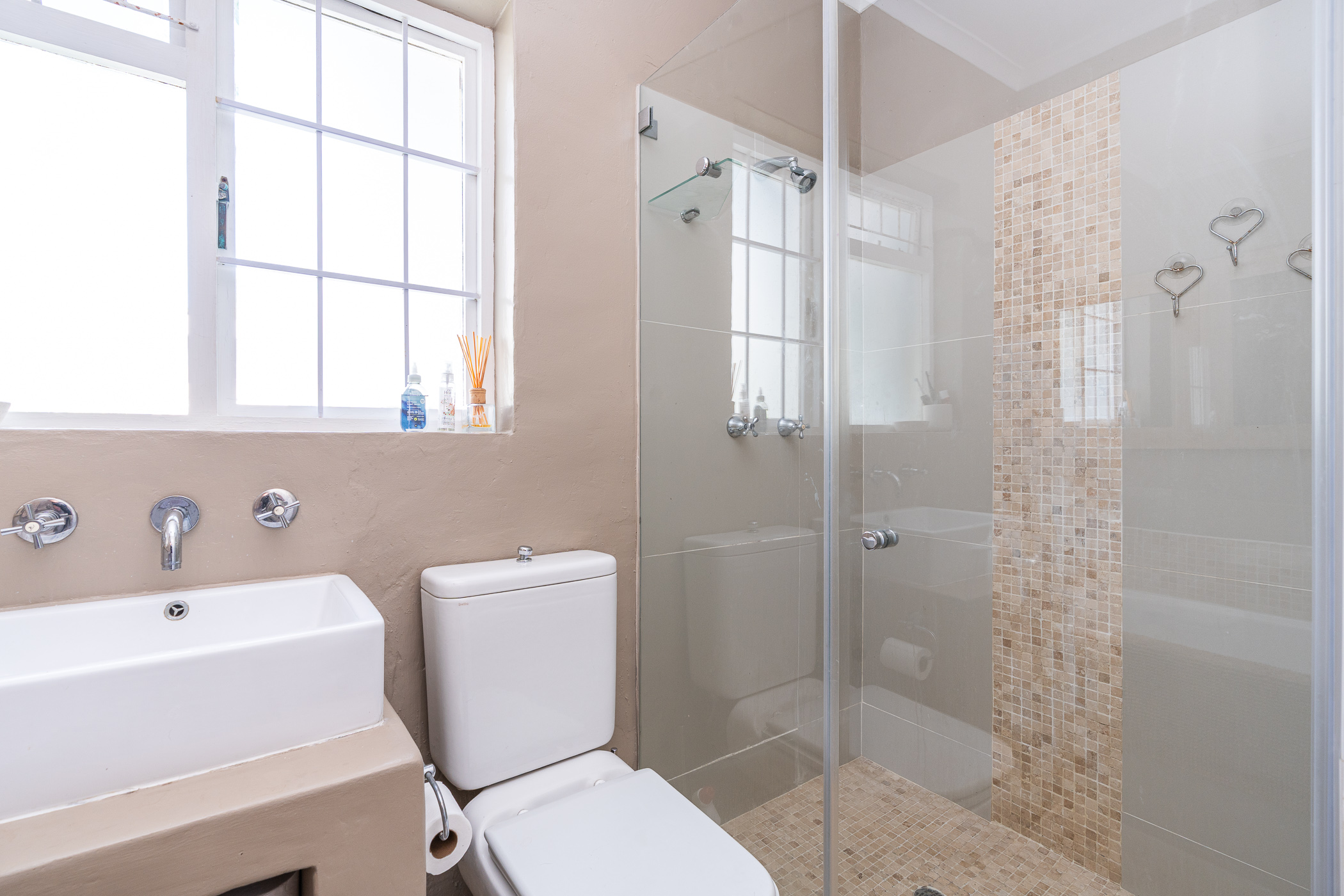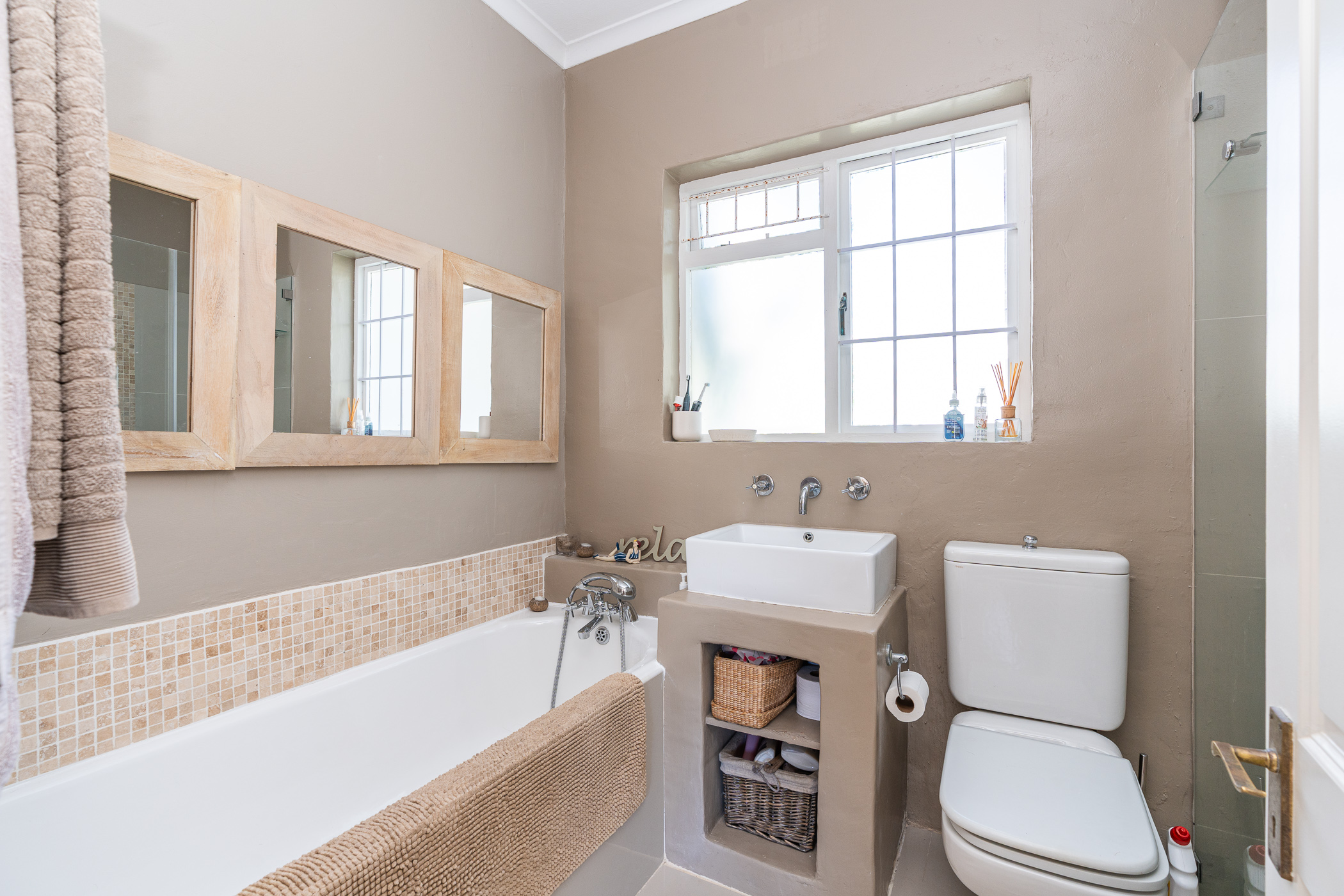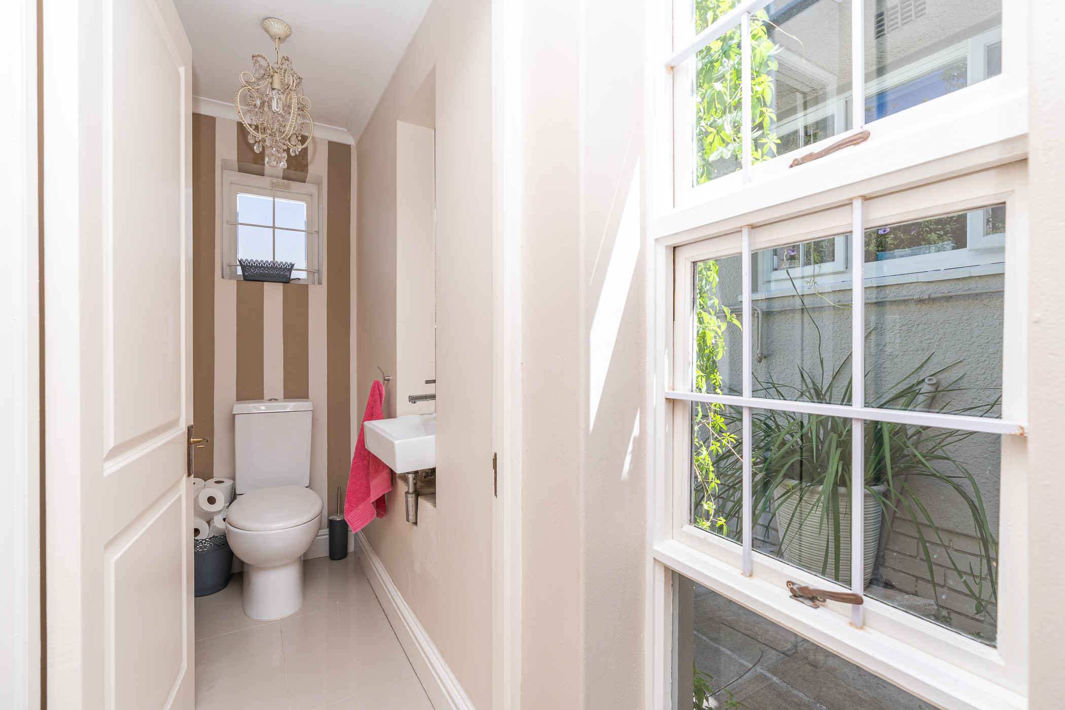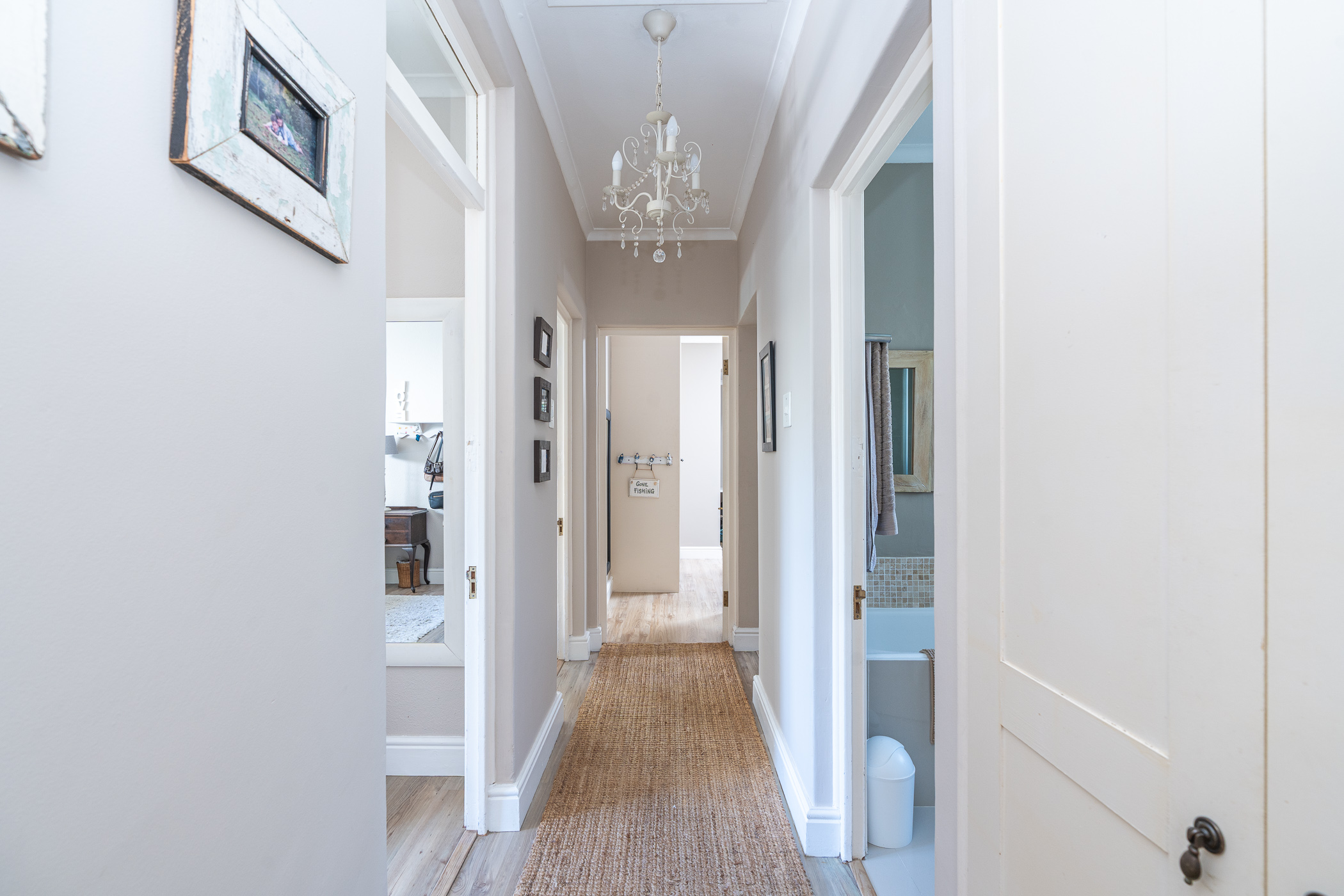 All 4 bedrooms are spacious and all can accommodate at least a queen size bed and are fitted with built-in cupboards. The main bedroom has an ensuite with shower, double vanity, and bath. Two of the bedrooms are north-facing and two are east-facing, ensuring that they remain cool in summer. The guest/family bathroom has both a shower and bath, and there is a guest cloakroom at the end of the hallway.