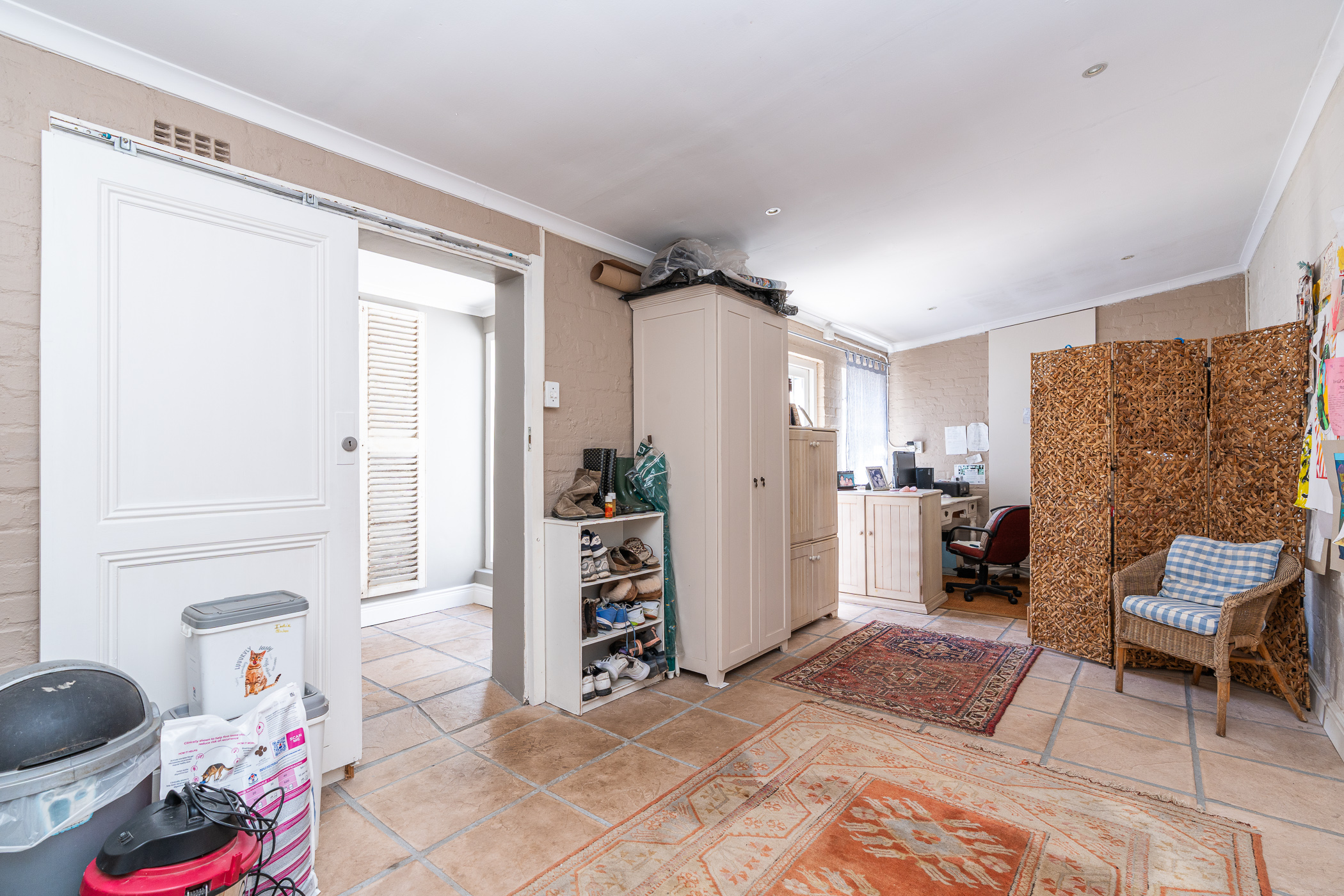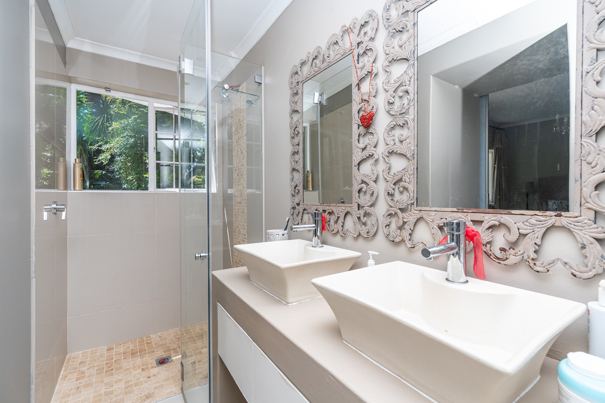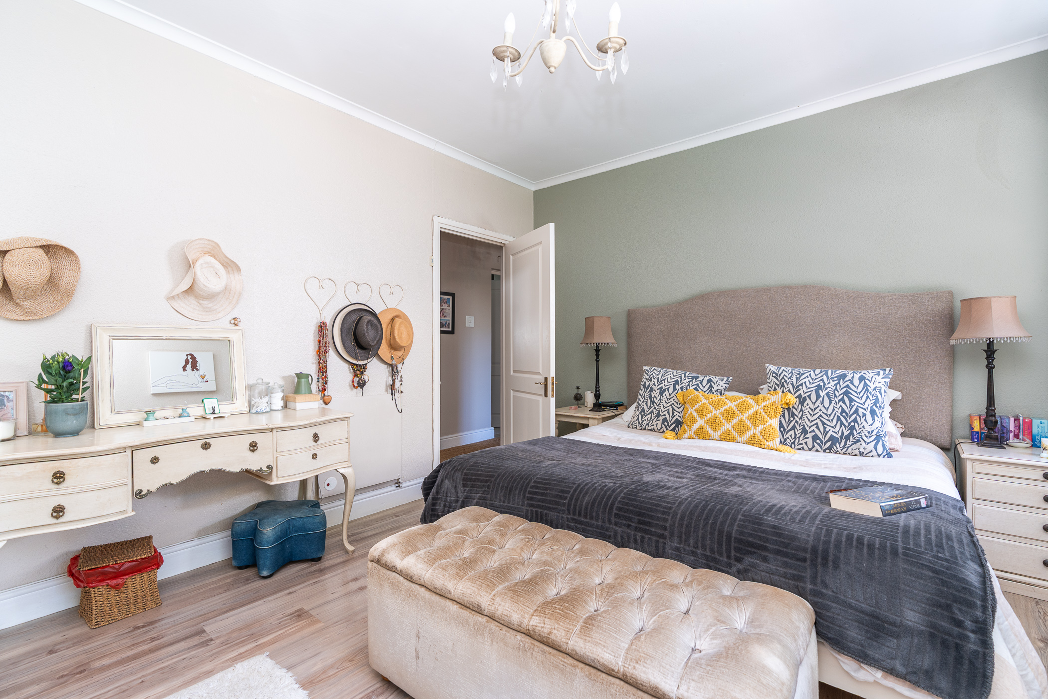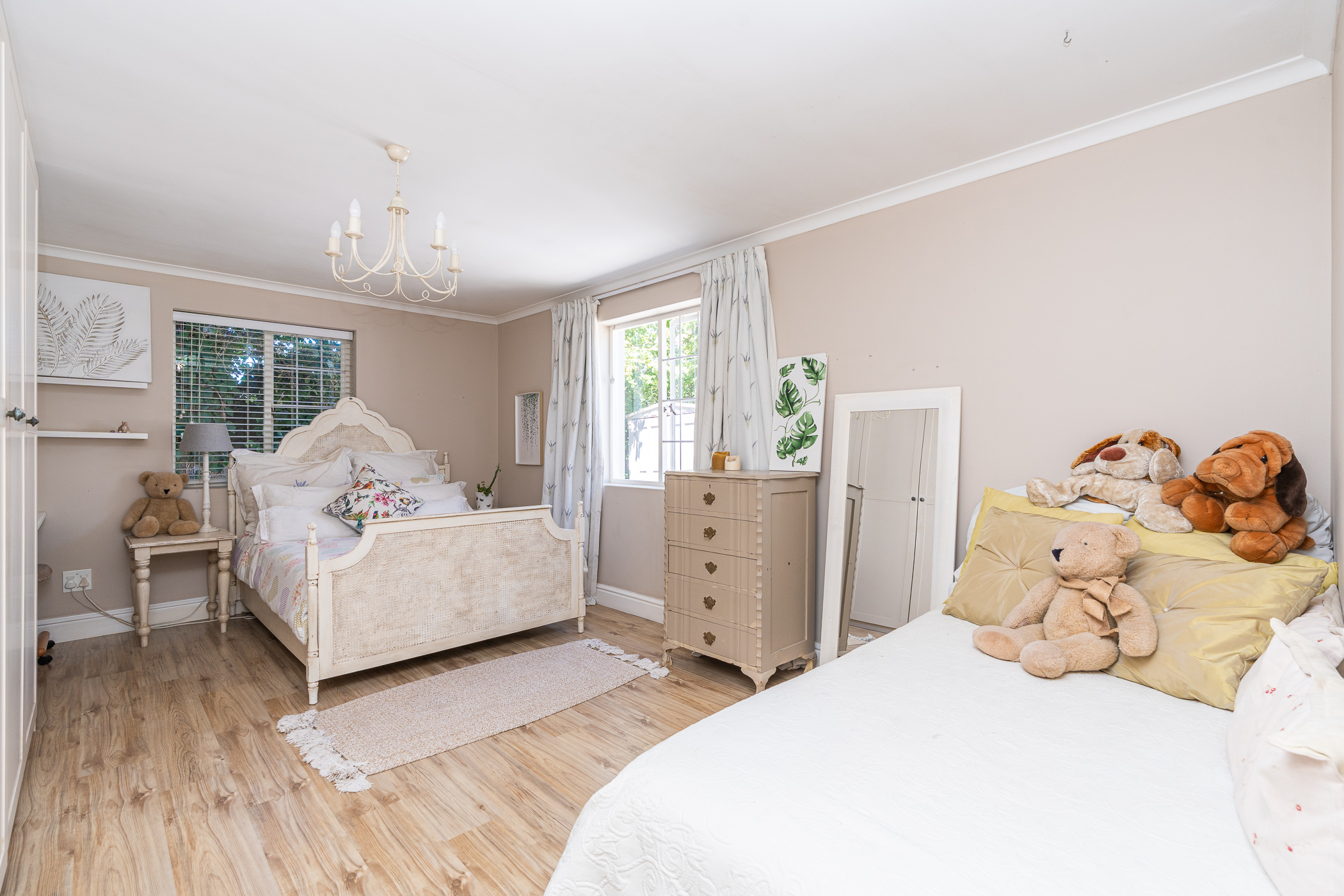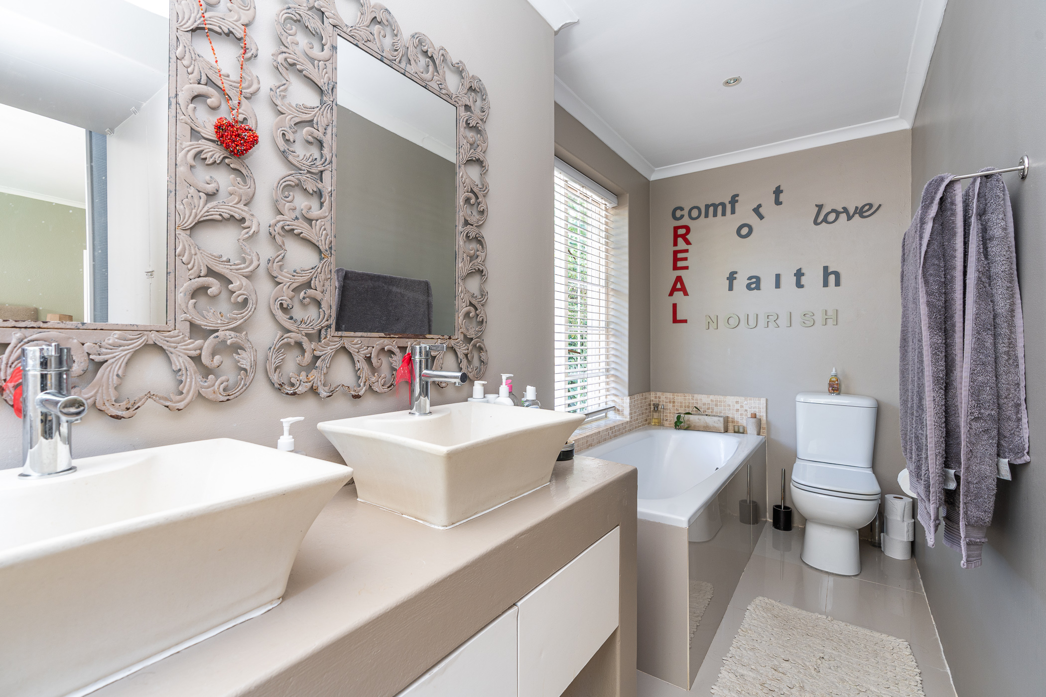 All 4 bedrooms are spacious and all can accommodate at least a queen size bed and are fitted with built-in cupboards. The main bedroom has an ensuite with shower, double vanity, and bath. Two of the bedrooms are north-facing and two are east-facing, ensuring that they remain cool in summer. The guest/family bathroom has both a shower and bath, and there is a guest cloakroom at the end of the hallway.