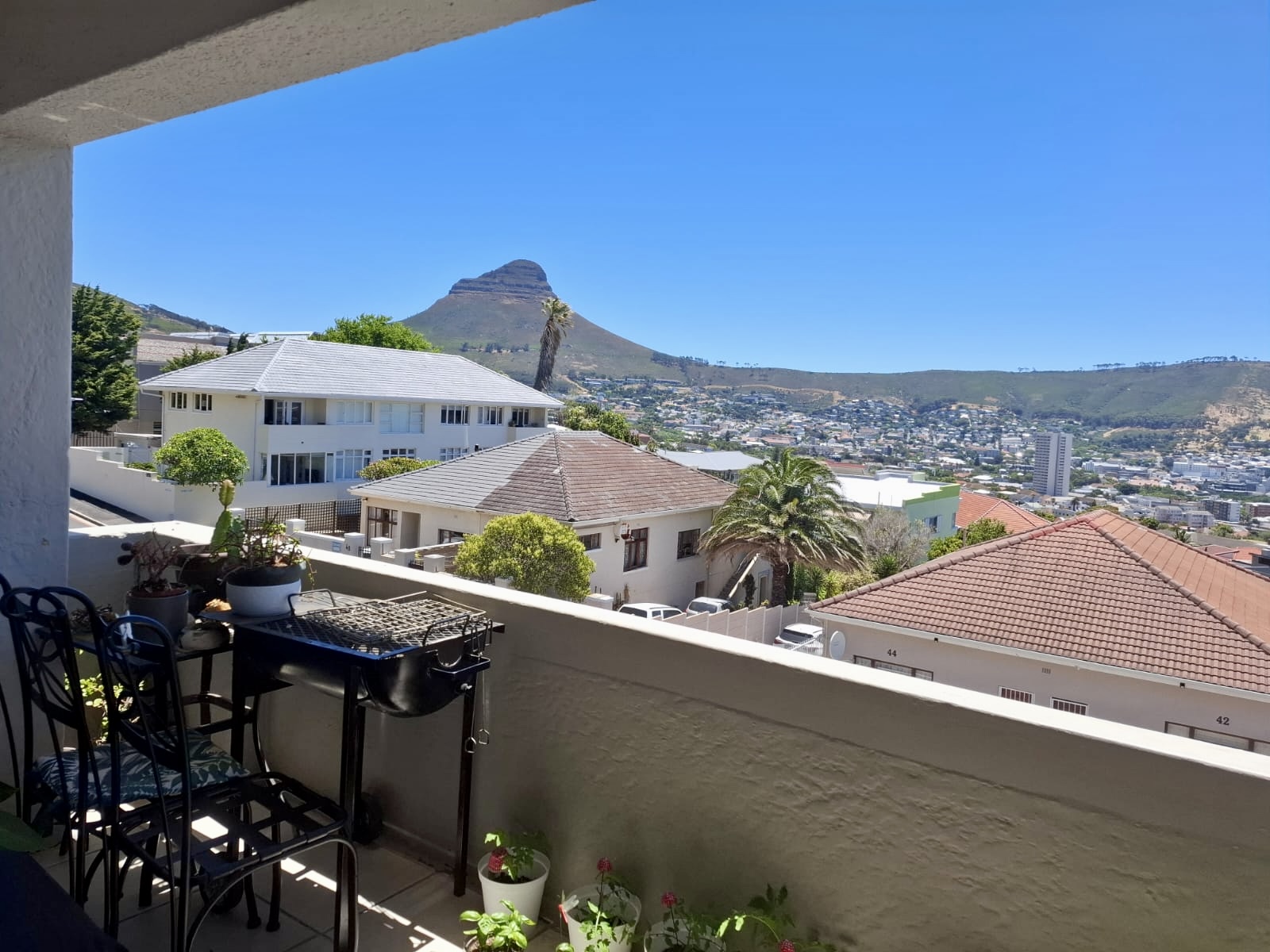 SOLD off market to an existing client of Illuminate Real Estate. This wonderfully-light, spacious, 70 sqm, 1 bedroom apartment sits at the top of Vredehoek in desirable Bellair Road. Offering beautiful, high ceilings and features from its construction era in the 1930s. The view is so incredible, you are likely to lose your thoughts as you enter. The kitchen, lounge and bedroom all gaze out across the city and bay. Offering an open plan kitchen with built-in Gaggenau stove and breakfast counter, spacious bathroom, full wall of cupboards in the bedroom, and a large undercover balcony large enough to seat 4-6 people. The apartment comes with an automated, oversized single garage, with a reserved parking space in front. This small block has a warm community, and a relaxed atmosphere. Communal braai and small communal garden. This is an excellent purchase with huge potential to add more value.
